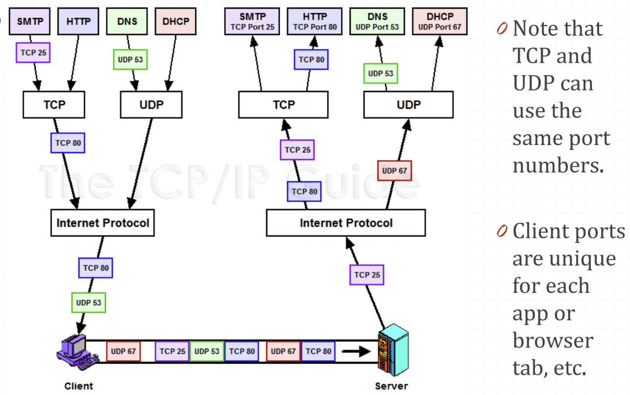 - There are well known port numbers such as SMTP using port 25, HTTP using port 80, etc.