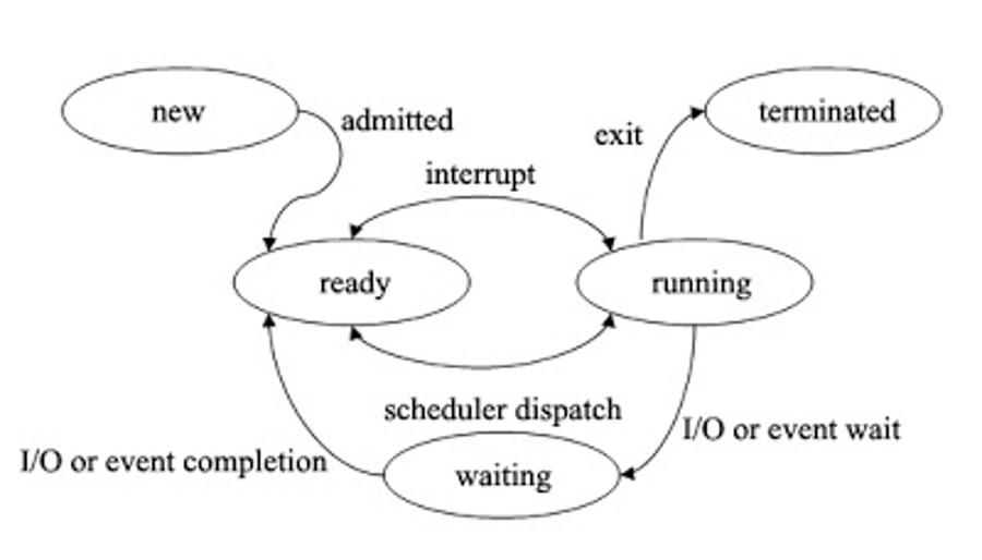 - Once the process has been assigned to a processor by the OS scheduler, the process state is set to running and the processor executes its instructions.