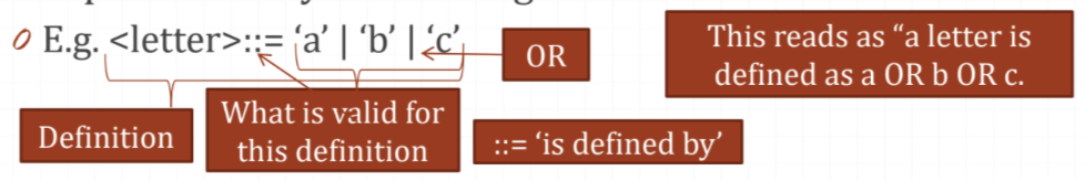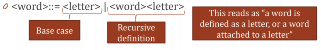 Once something is defined, it can be used again. To do this, BNF makes use of recursive definitions