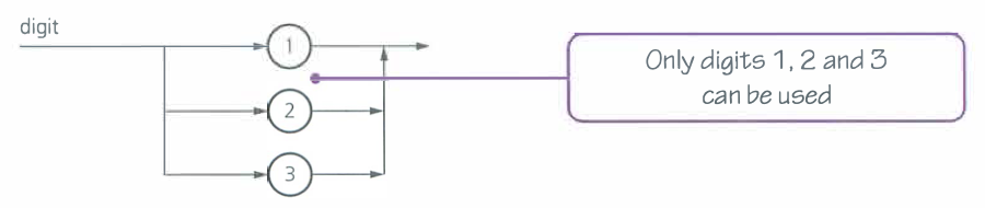 - The diagram describes possible paths between these two points by going through other non-terminals and terminals